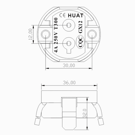 Male tab:GX12 nickel-plated brass