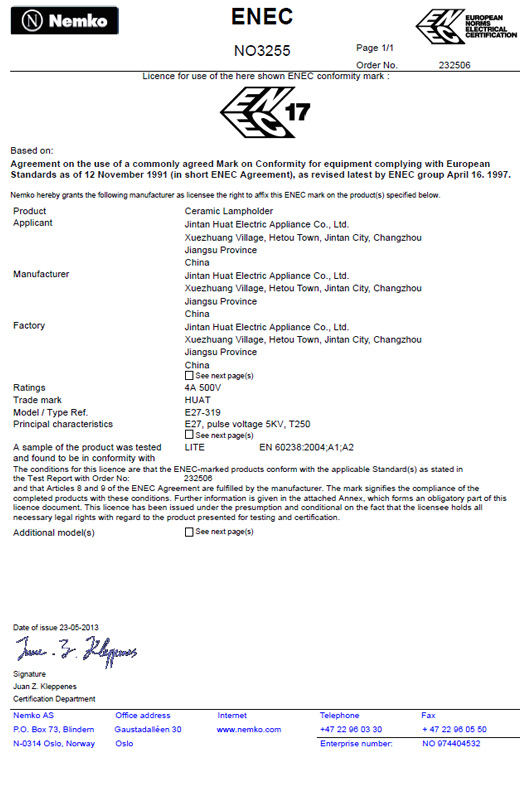 ENEC证书螺口灯座E27-319 232506