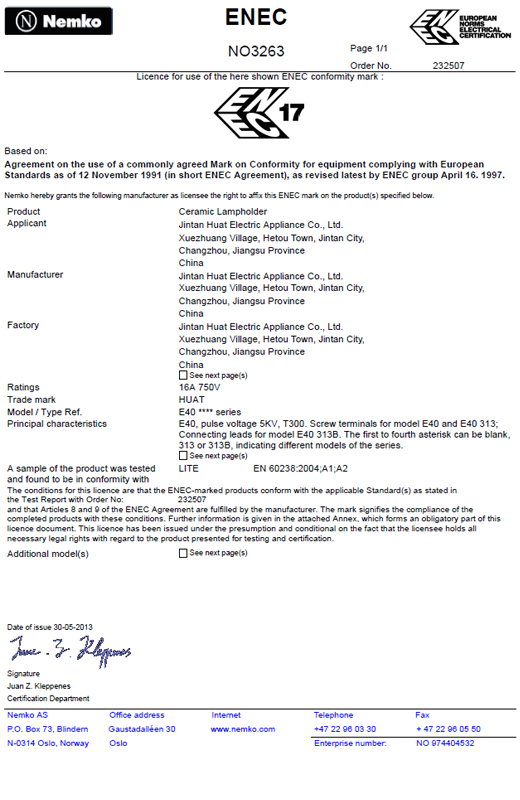 ENEC证书螺口灯座E40 E40 313 E40 313B 232507