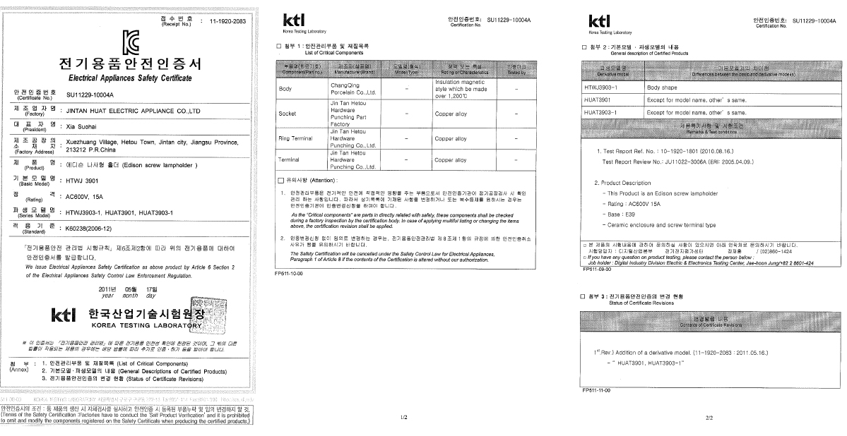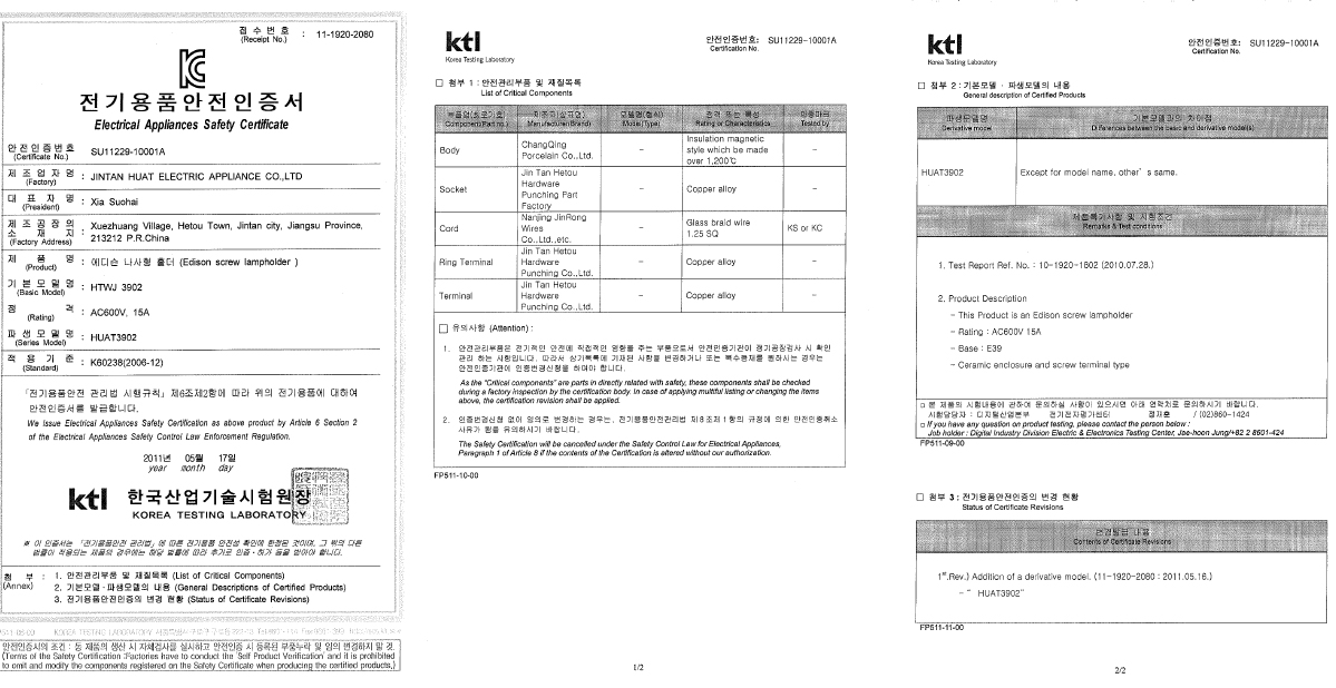 KC证书螺口灯座E3902