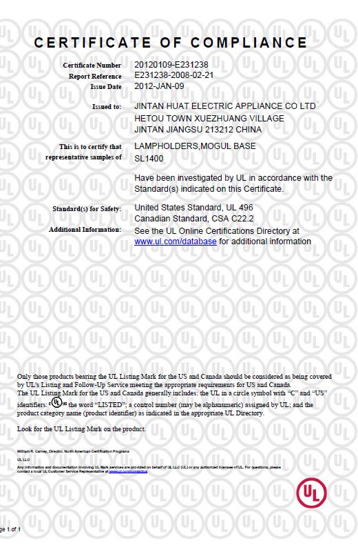 UL证书螺口灯座E39-E231238